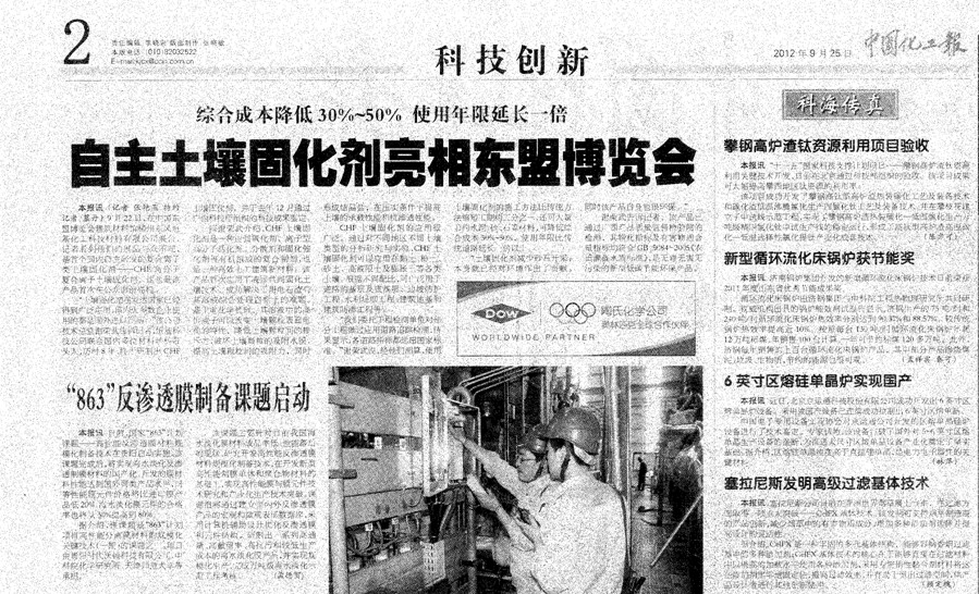 CHF土壤固化劑登上中國化工報